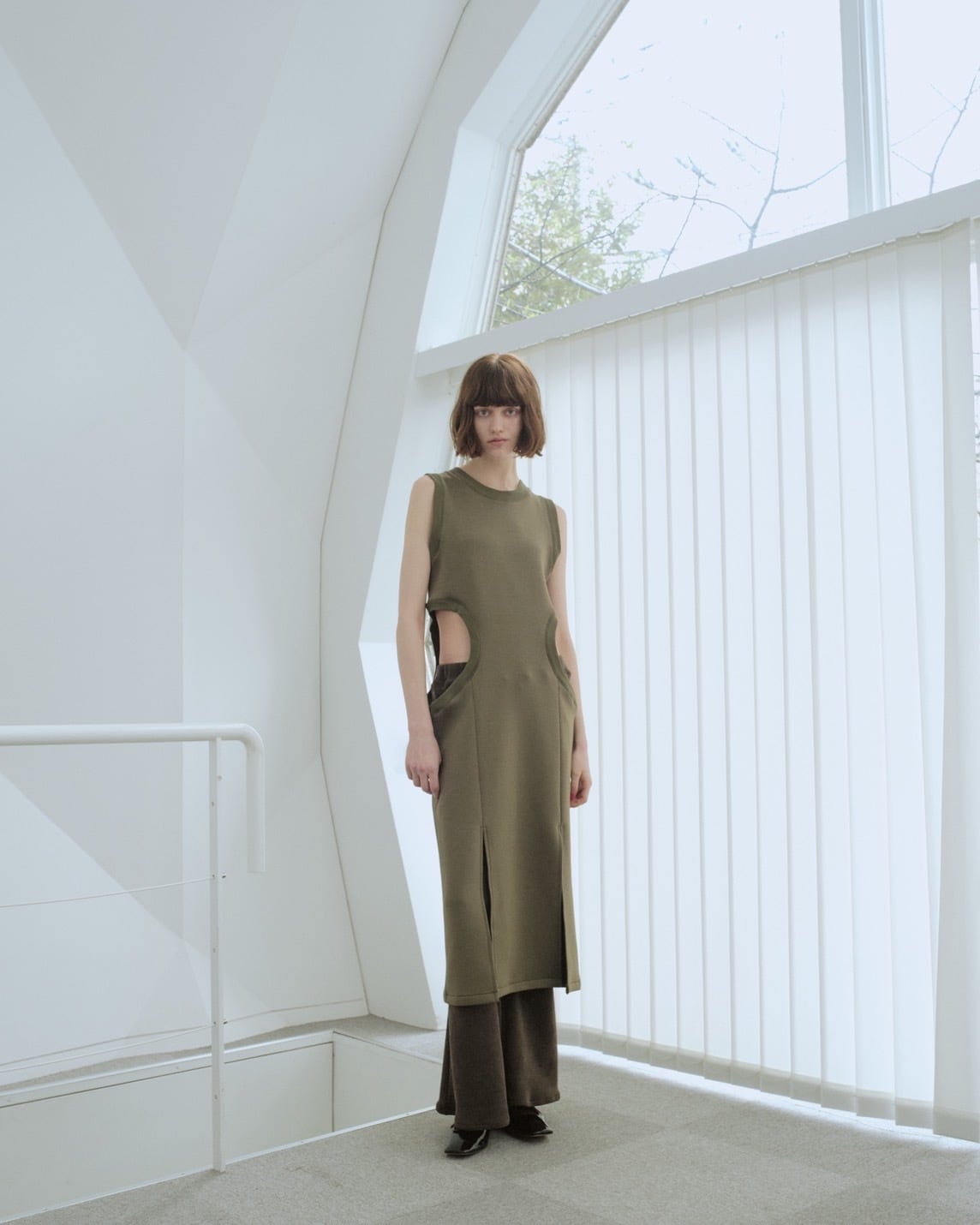 Design ・ウエストに大胆なカットアウトとフロントスリットを採用しました。自由なレイヤードスタイルをお楽しみ下さい。